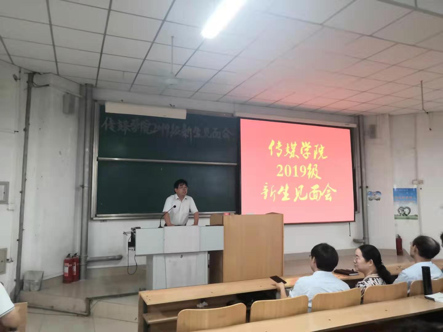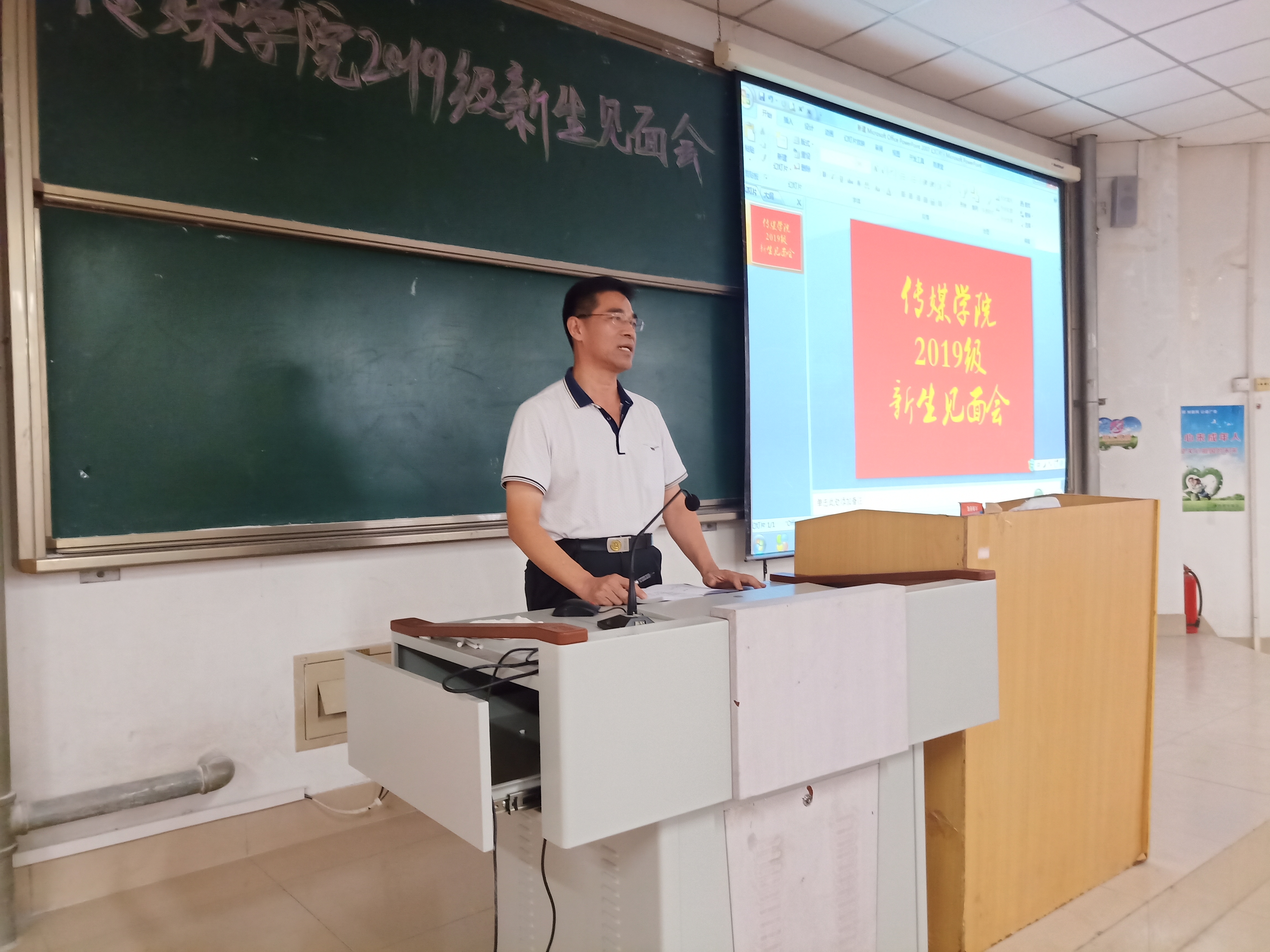 会议当天正值第35个教师节,刘书记首先向在场的各位教师们表达了亲切的问候,感谢他们的认真负责和辛苦付出,并对新生的到来表示了热烈的欢迎。尹院长代表学院做了讲话,对传媒学院的专业设置、师资团队、软件硬件设施、以及办学情况都做出了简明介绍。并着重介绍了学分制,刚性学分、柔性选课、弹性学制,学分制将更加有利于发挥出学生的主观能动性。另外,尹院长从“志存高远,规划人生;脚踏实地,持之以恒;全面发展,完善人格”三个方面寄语初入大学的同学们能够立鸿鹄之志,有家国情怀,从实际出发,做好人生规划,确立人生目标,积极投身服务社会。