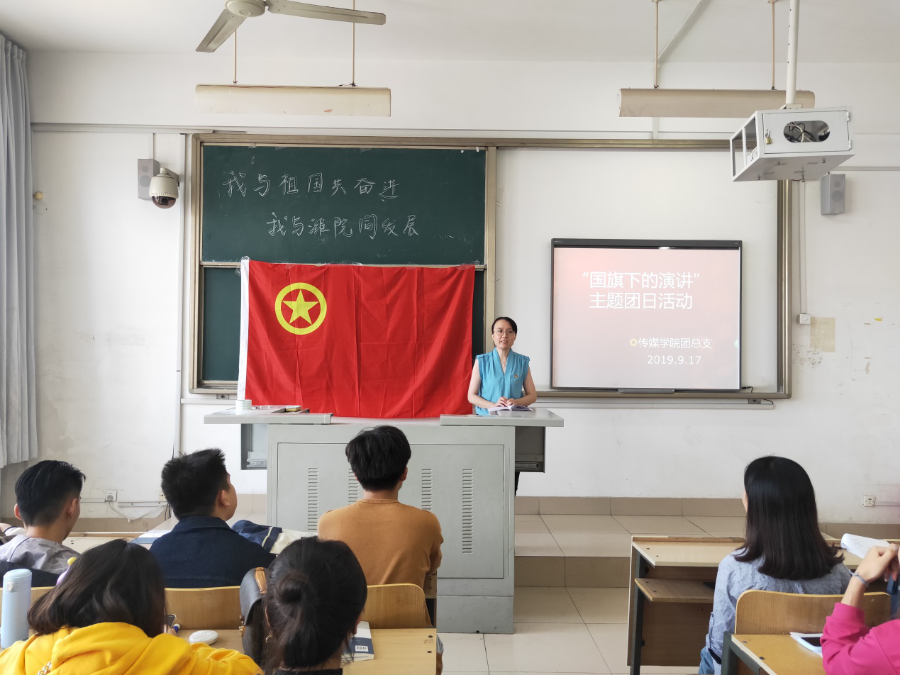 “峥嵘七十载,砥砺奋进新时代。”为庆祝中华人民共和国成立70周年,唱响“礼赞新中国,奋进新时代”的青春主旋律,激励和引导广大团员青年弘扬以爱国主义为核心的伟大民族精神,进一步坚定“四个自信”,9月17日,传媒学院团总支在天一楼教室开展了以“我与祖国共奋进,我与潍院同发展”为主题的团日活动。本次团日活动以主题演讲的形式开展,2018级播音与主持艺术一班团支书褚晓锋主持,传媒学院团总支书记杨颂出席,2018级团员们参加了活动。