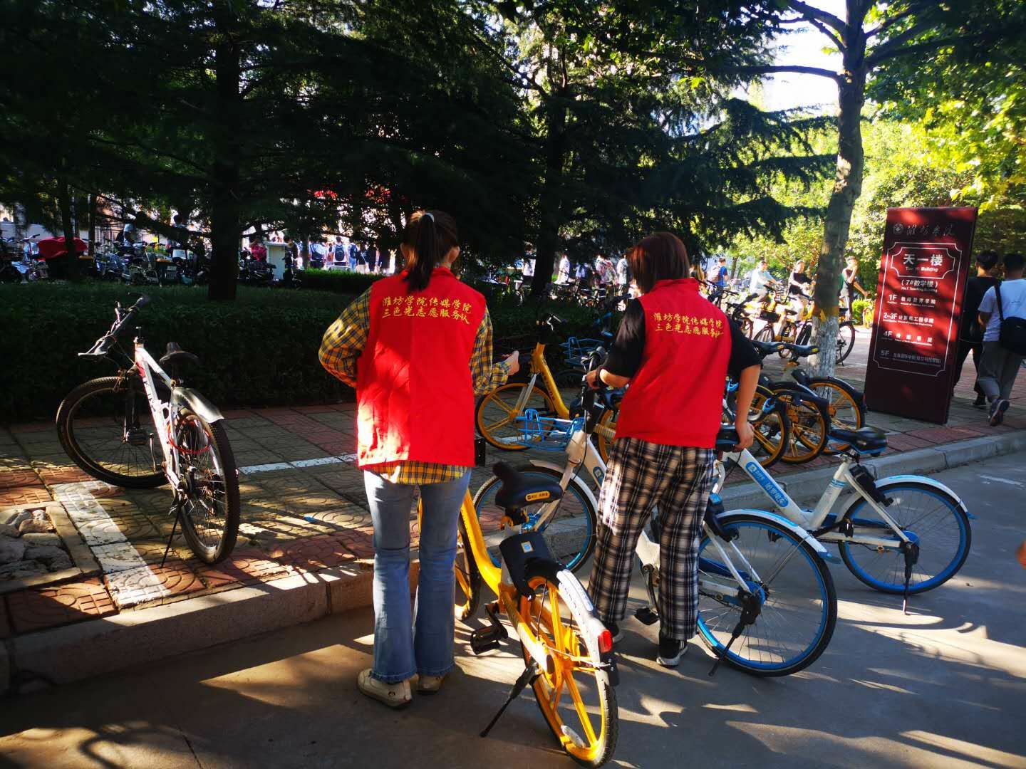 “创文明城市,建文明校园”,正值潍坊市创建文明城市之际,传媒学院三色光志愿者服务队闻声而动,于9月4日在潍坊学院天一楼、图书馆等人流量密集场所开展“摆放校园自行车,营造整洁潍院”主题活动。