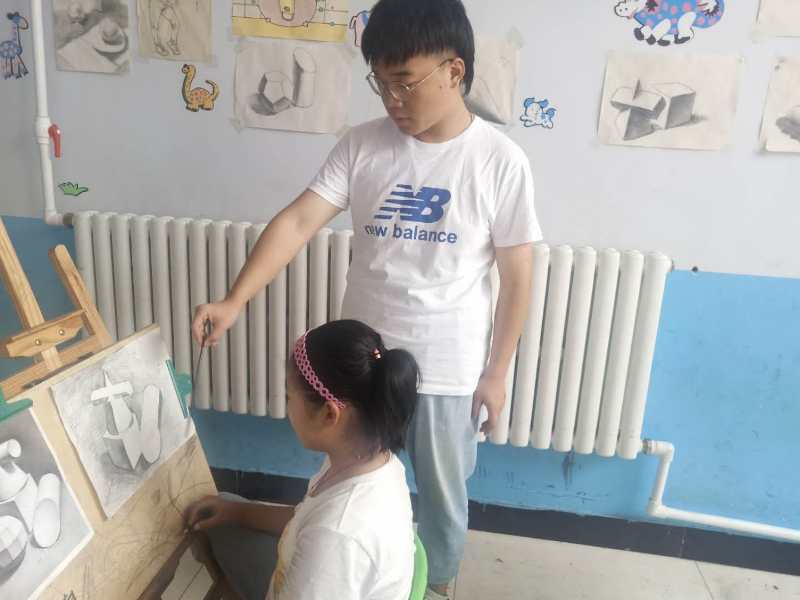 炎热的夏日并没有阻挡传媒学院三色光志愿者服务队开展志愿活动的脚步,动画专业的志愿者们来到滨州市无棣县金鼎艺校美术教育机构为当地学生提供志愿服务活动。
