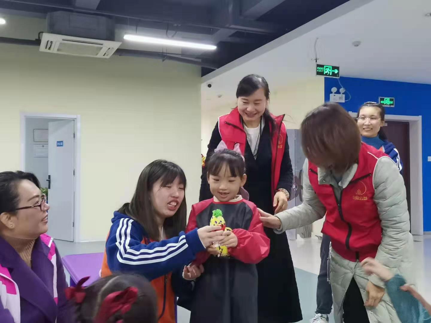 志愿者们在与康复老师们进行短暂的交流,了解孩子们的基本情况之后,便帮助老师为每一个孩子准备了一个大鸡蛋与各种颜色的颜料,让孩子们发挥想象,把鸡蛋变成属于自己独一无二的艺术品。随后,志愿者们为孩子们表演了精心准备的手语舞《听我说,谢谢你》,尝试走进他们小小的世界,和孩子们度过了美好的一天。
