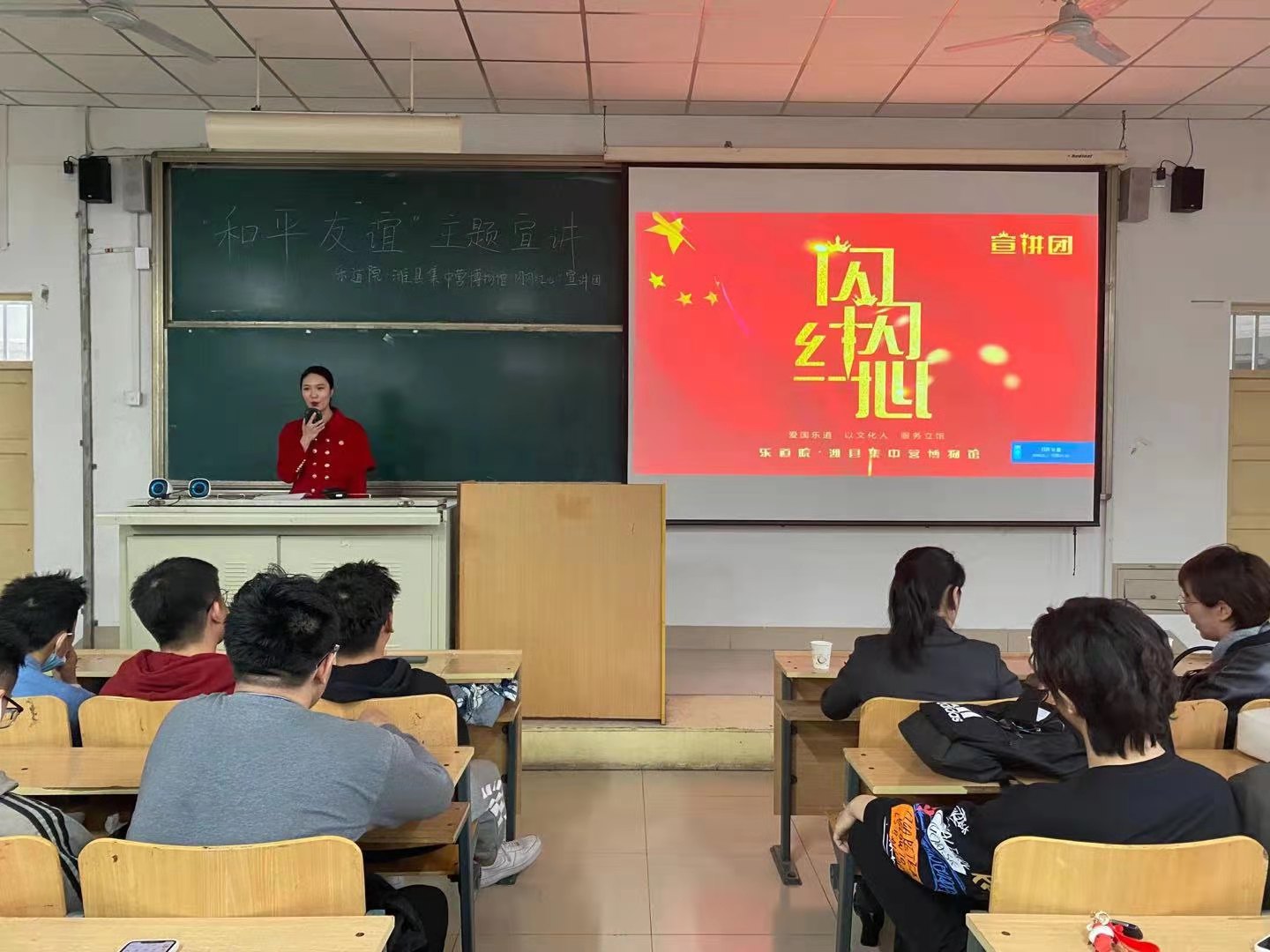 红星闪闪放光彩,和平友谊心中记。为配合搞好党史学习教育,4月11日下午,传媒学院邀请乐道院·潍县集中营博物馆“闪闪红心•宣讲团”,在天一楼7422教室开展了一场以“和平友谊”为主题的宣讲活动。我院学工办主任徐金德、动画教研室主任庄艳杰、播音与主持艺术教研室刘蕊老师以及2020级全体同学参加了本次活动。