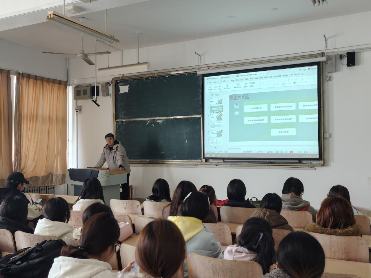 班会伊始,马伟超结合智联招聘等行业数据,深入分析了当前传媒行业的就业形势,指出新媒体岗位需求旺盛、技术融合加速等特点,引导学生正视机遇与挑战。随后,他从职业规划、自我评估、求职技巧、政策权益等多个方面展开讲解,通过霍兰德职业兴趣测试、MBTI性格分析等工具,帮助学生明确职业方向,树立短期与长期目标。马伟超还通过优秀校友张世豪、央视主持人康辉等成功案例,强调坚持积累、专业态度与责任意识的重要性。