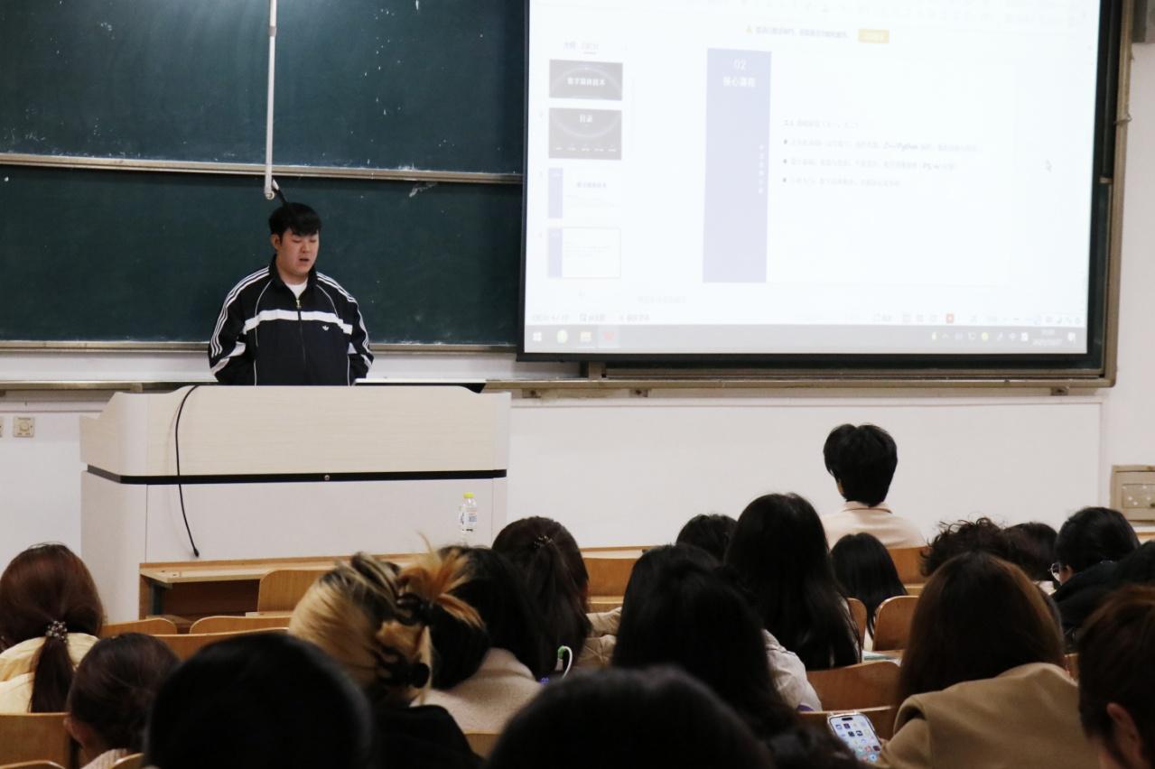 学风建设主题教育活动里,张潇老师强调了学习态度、学术诚信的重要性,介绍教学资源与奖学金政策,还邀请高年级优秀学生分享学习、备考经验,增强了新生学习主动性。