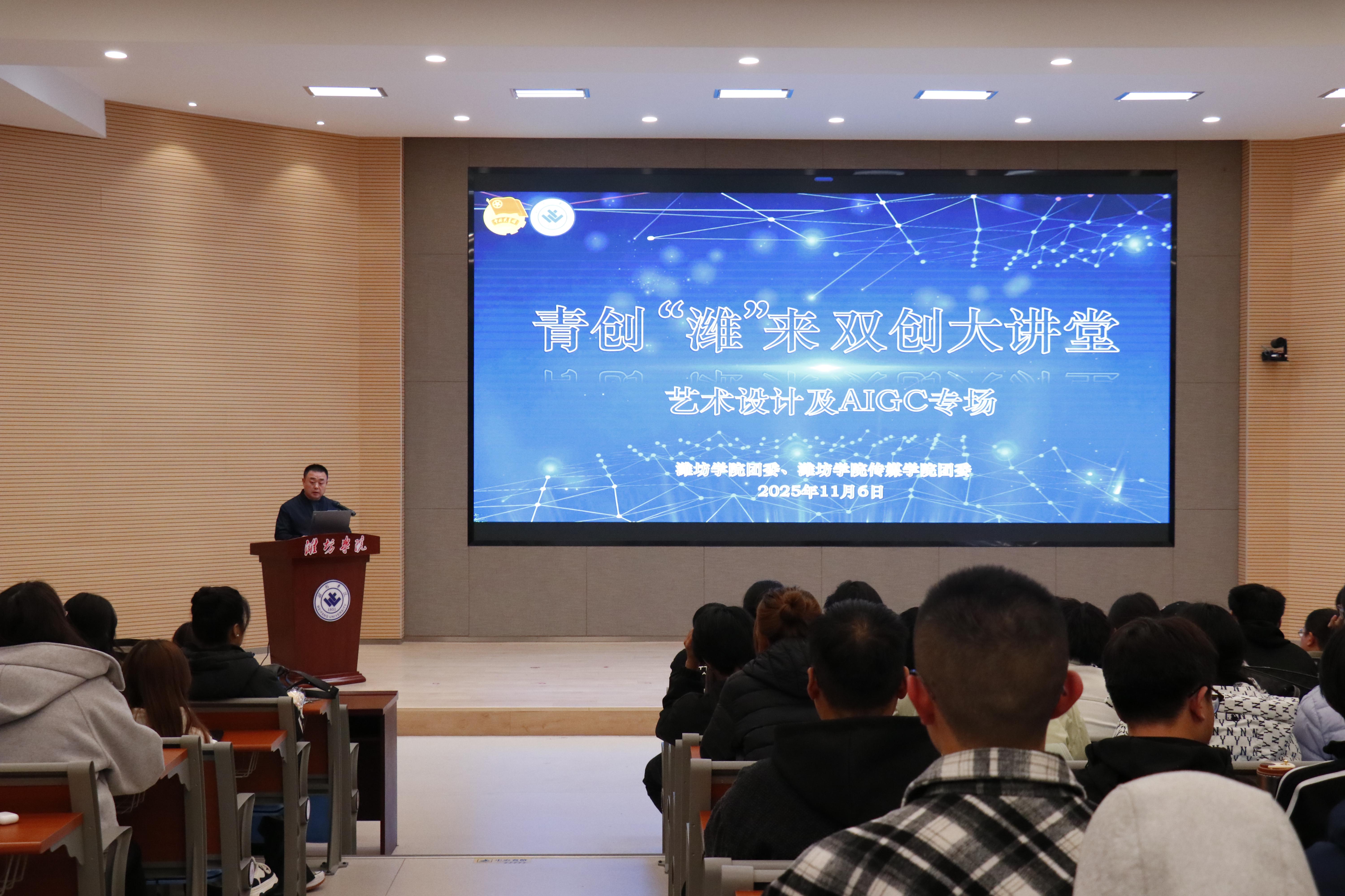 为搭建学科竞赛交流平台,凝聚师生创新力量,提升专业素养与实战能力,11月6日下午,由校团委主办、我院承办的青创“潍”来双创大讲堂——艺术设计及AIGC专场活动在知新楼4109报告厅成功举办。我院党委副书记、院长韩殿元,学生工作办公室主任沈杰出席,我院优秀教师徐滋程、华云飞、张舒,优秀学生代表程子怡、徐善意、王欣、侯雅琦、宋文洁、张文迪、杨露以及2025级部分师生共同参与。