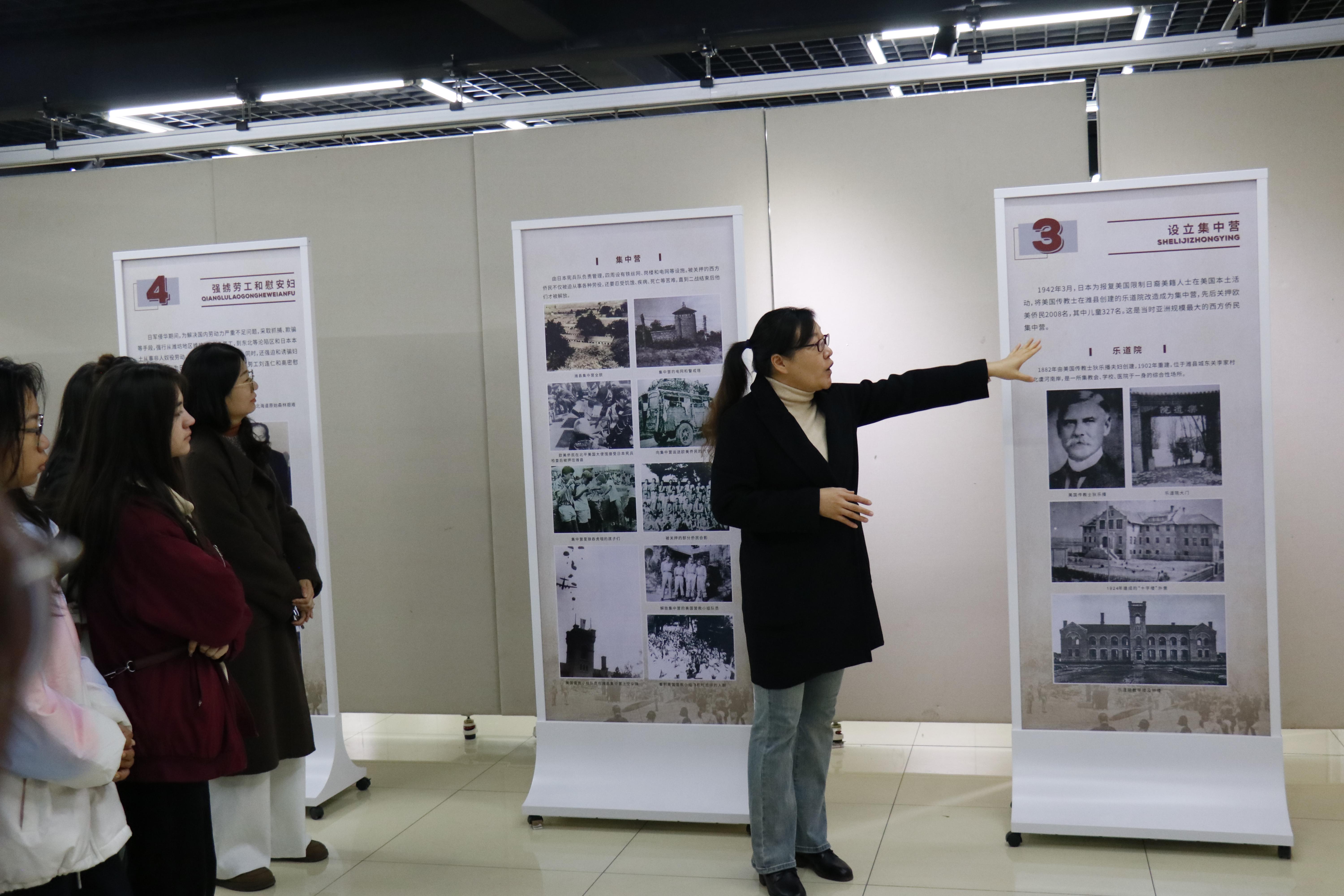 参观现场,张晓静结合展览内容,为师生梳理了从抗战全面爆发到潍坊地区军民奋起抗争,直至最终赢得胜利的历史脉络。她重点讲述了潍坊地区党组织领导抗日救亡运动、军民共建“渤海走廊”运输线以及抗日武装英勇斗争的事迹,并指出这段历史是新时代青年理想信念教育的宝贵资源。张晓静还勉励同学们要铭记历史,传承抗战精神,在未来传媒实践中坚守社会责任。