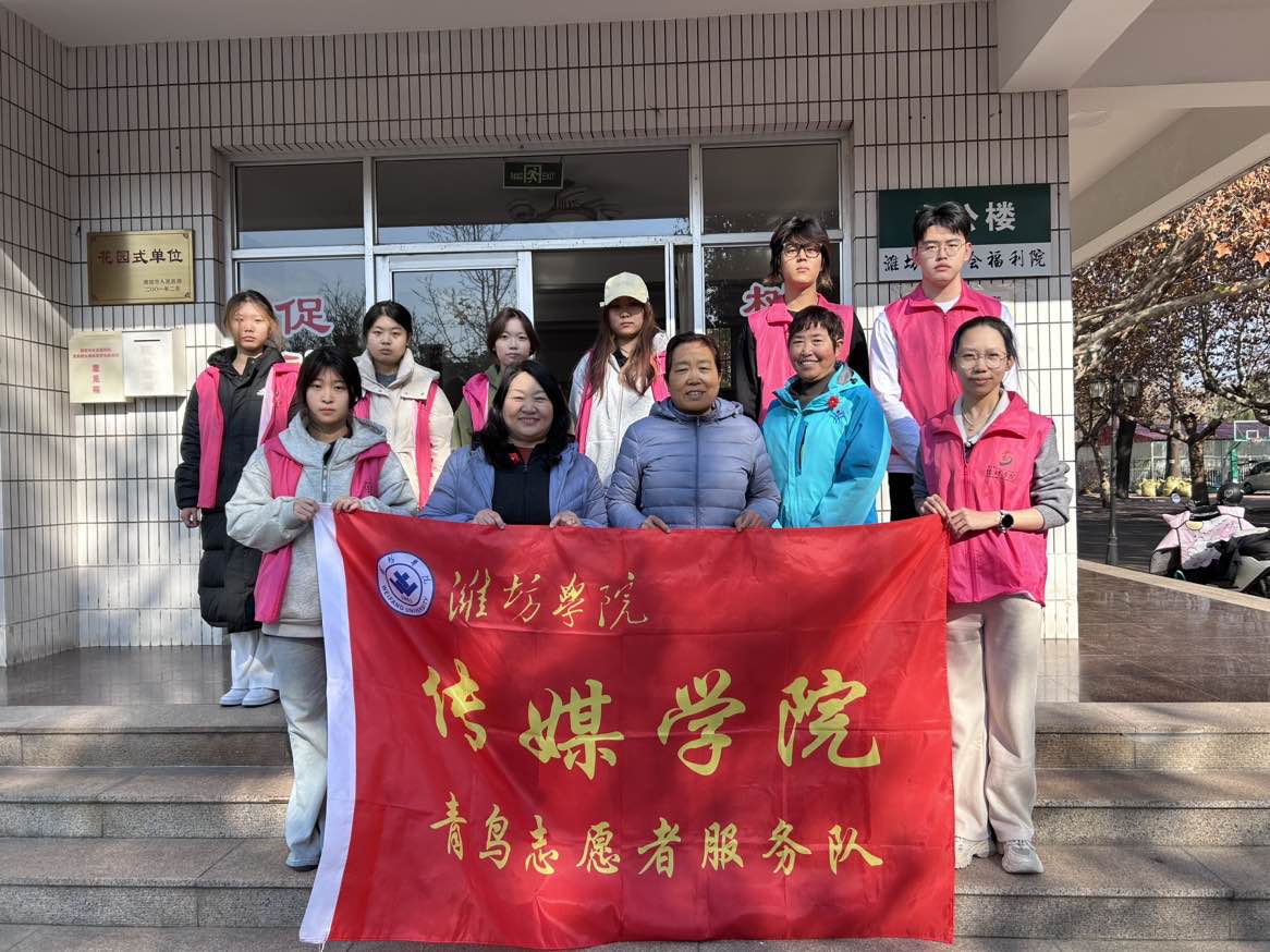 为进一步弘扬尊老爱幼的中华传统美德,营造关爱互助的社会氛围,11月22日,我院“青鸟”志愿者服务队走进潍坊市社会福利院,开展了一场以“冬日暖意浓, 饺子寄温情”为主题的志愿服务活动。
