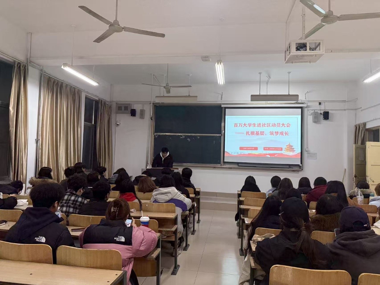 为深入学习党的二十届四中全会精神,积极响应山东省“百万大学生进社区”行动号召,引导传媒学子以专业技能服务基层、助力社区文化传播升级,11月23日下午,传媒学院组织各班级集中召开“百万大学生进社区”主题班会。本次班会由各班班委主持,2025级全体学生参与,现场通过课件展示、案例分享等形式,让同学们直观了解实践方向。