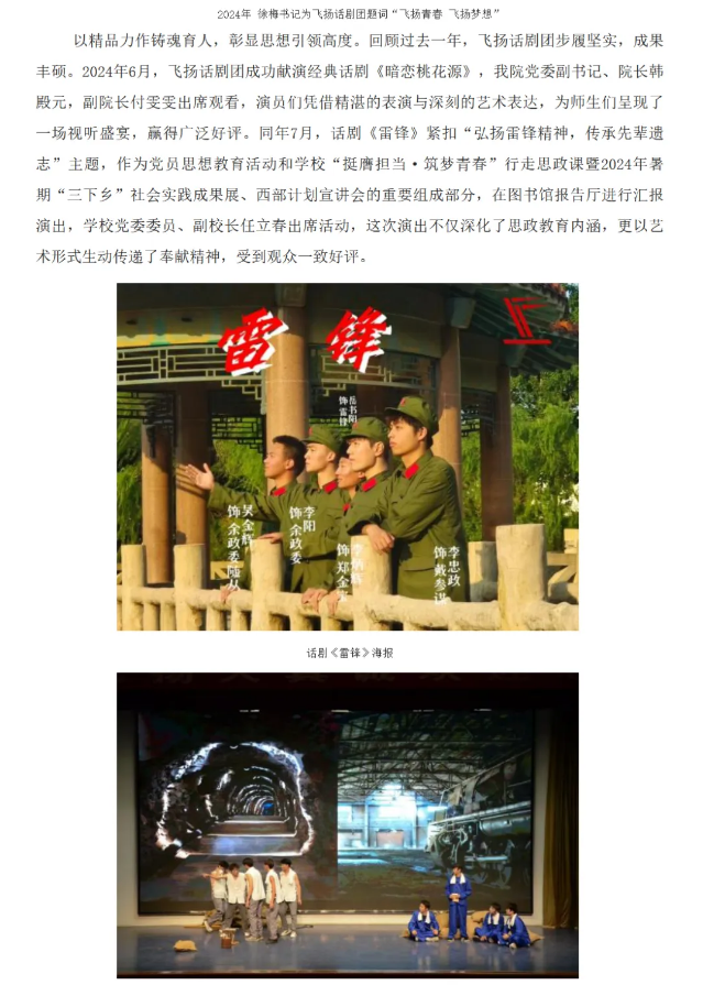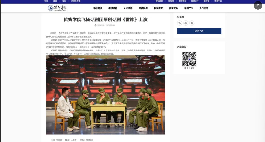 潍坊学院“挺膺担当*逐梦青春”行走思政课暨2024暑期“三下乡”社会实践成果展、西部计划宣讲会演出改编话剧《雷锋》https://mp.weixin.qq.com/s/UIVa6BbqcLf3PDctTJ4ouA