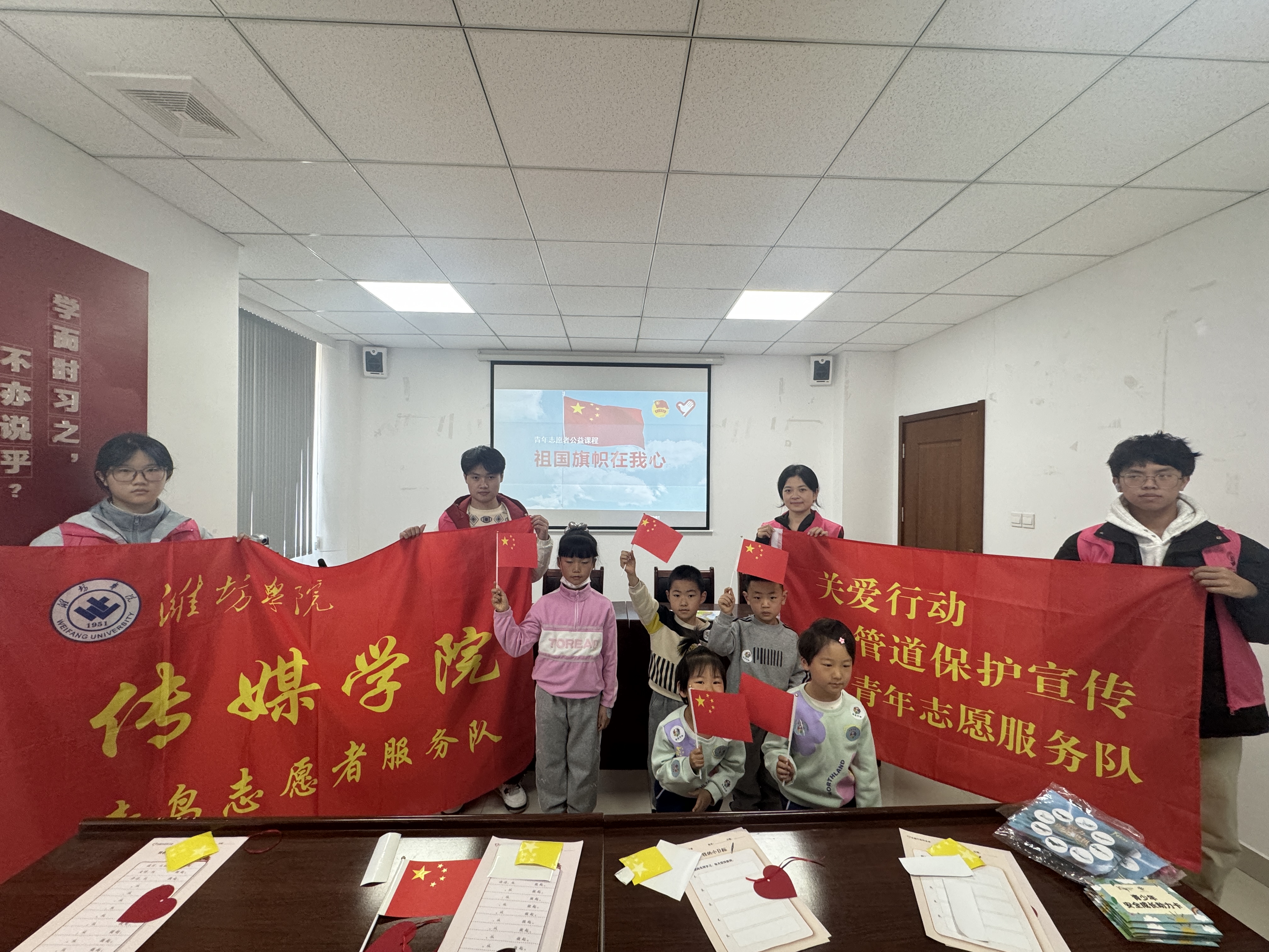 为深入贯彻落实立德树人根本任务,引导青少年树立正确的世界观、人生观、价值观,筑牢油气管道安全“人民防线”,12月6日,我院“青鸟”志愿者服务队走进潍坊市府东社区青少年活动中心,开展以“传承红色基因,争做时代新人”为主题的“少年儿童安全守护计划”管道保护宣传思想引领宣传活动,用青春力量为青少年成长保驾护航。