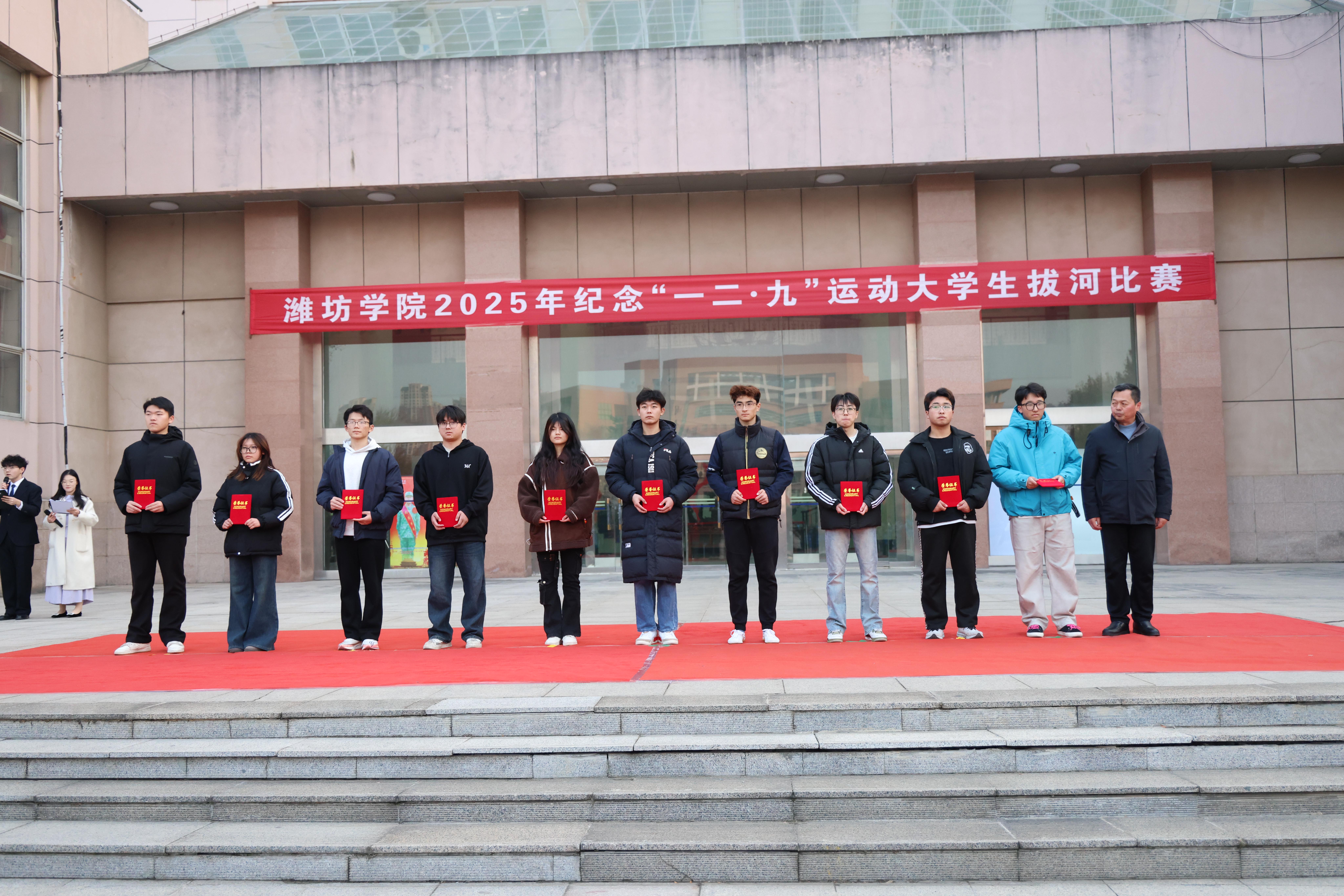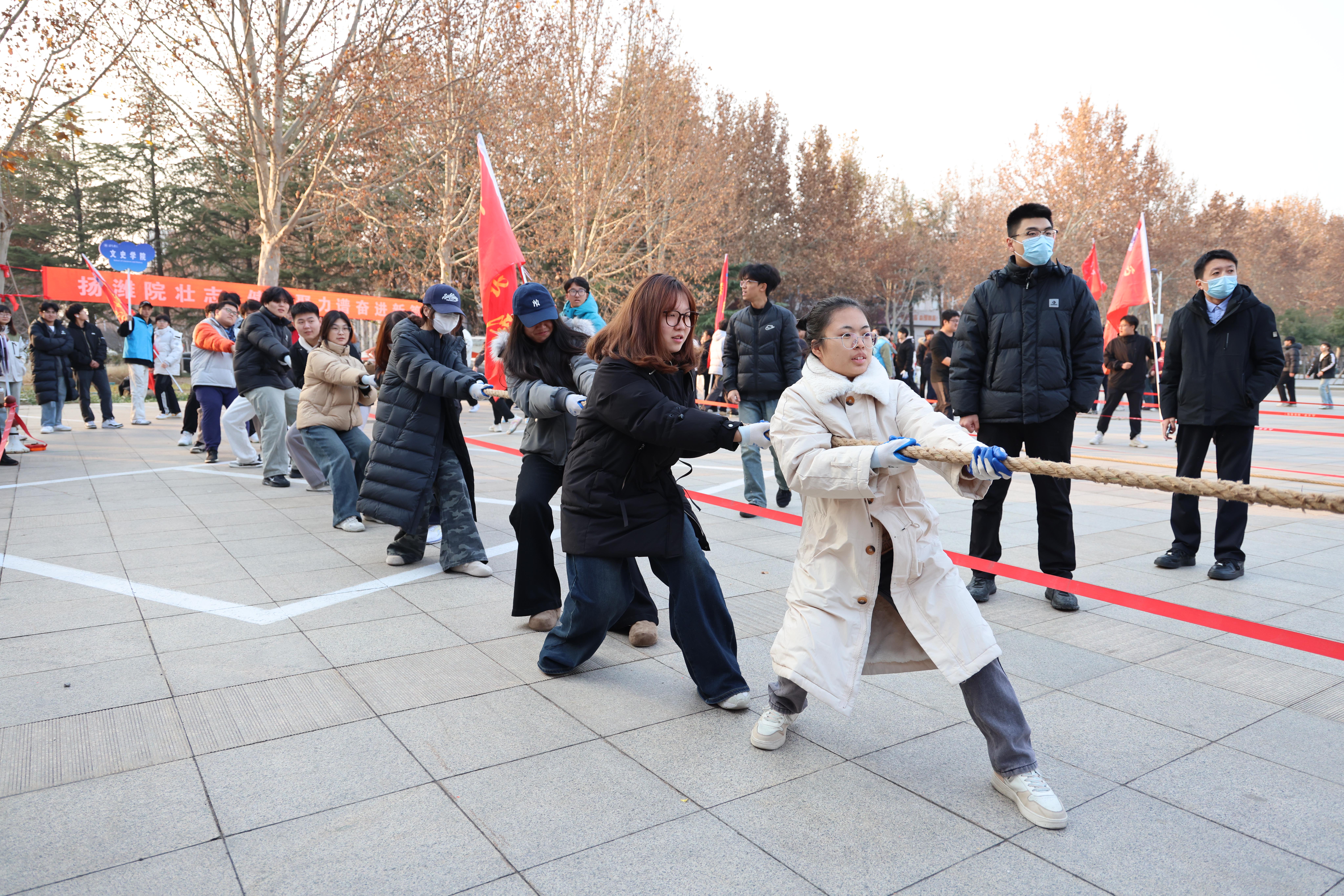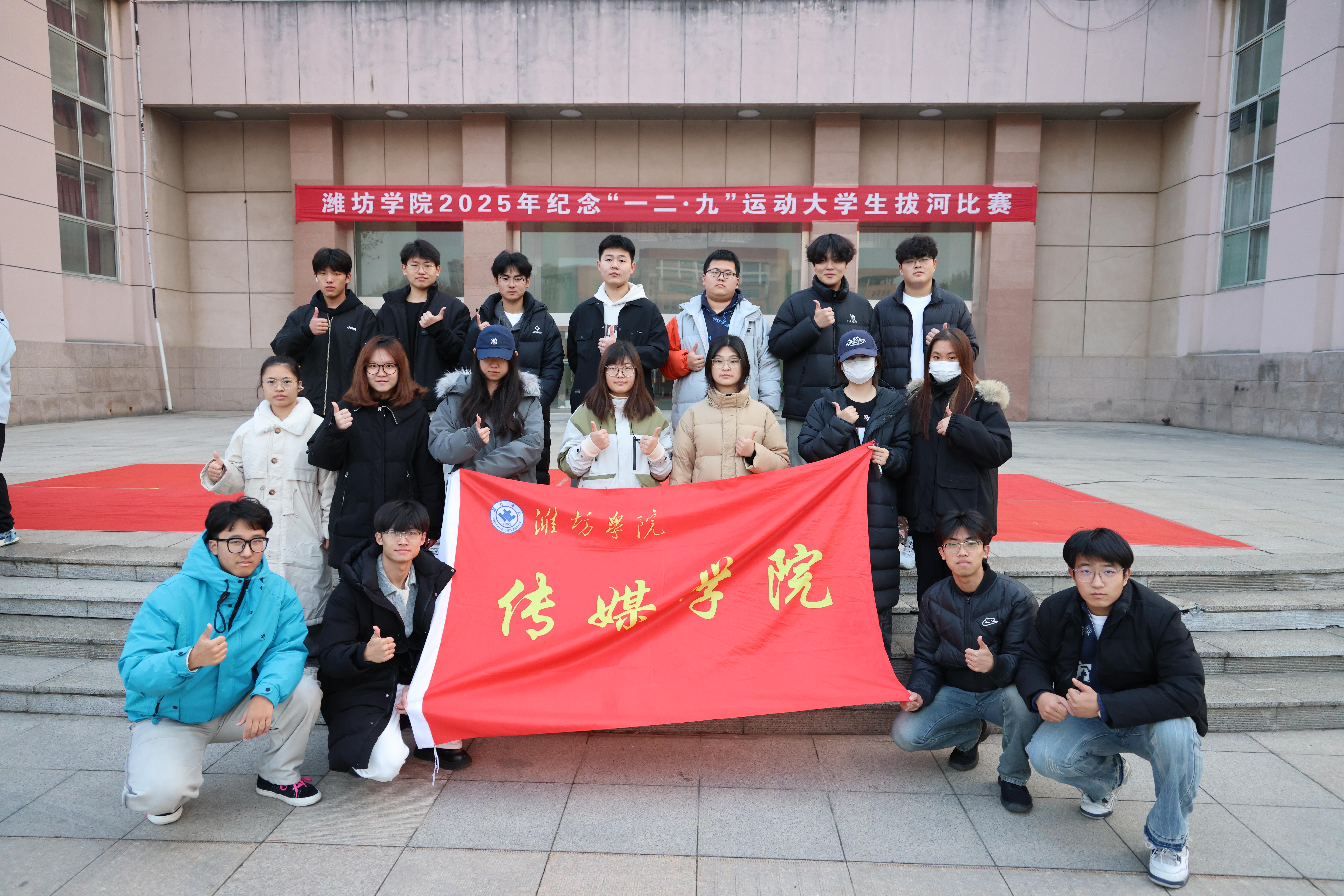 为传承“一二·九”运动爱国精神,厚植青年学生家国情怀,激发团结奋斗、勇于担当的青春斗志,12月9日下午,潍坊学院2025年纪念“一二·九”运动大学生拔河比赛在行政楼后广场举行。