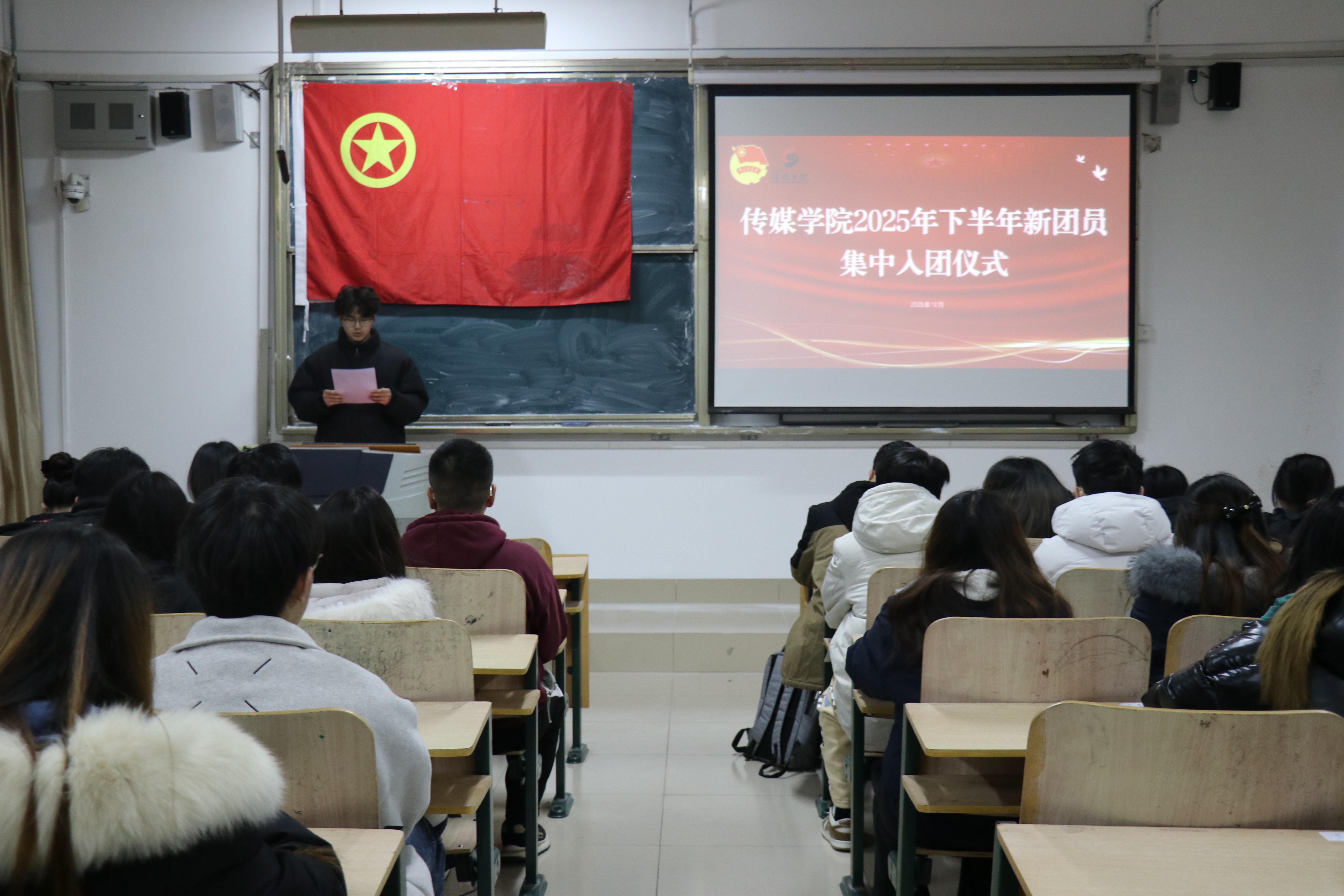 为推进共青团改革、落实从严治团要求,增强团员光荣感、使命感与归属感,深化思想引领、强化身份意识,12月9日晚,我院在天一楼7412教室举行2025年下半年新发展团员入团仪式。我院团委副书记兼学生工作办公室副主任张潇出席,全体新发展团员参加。