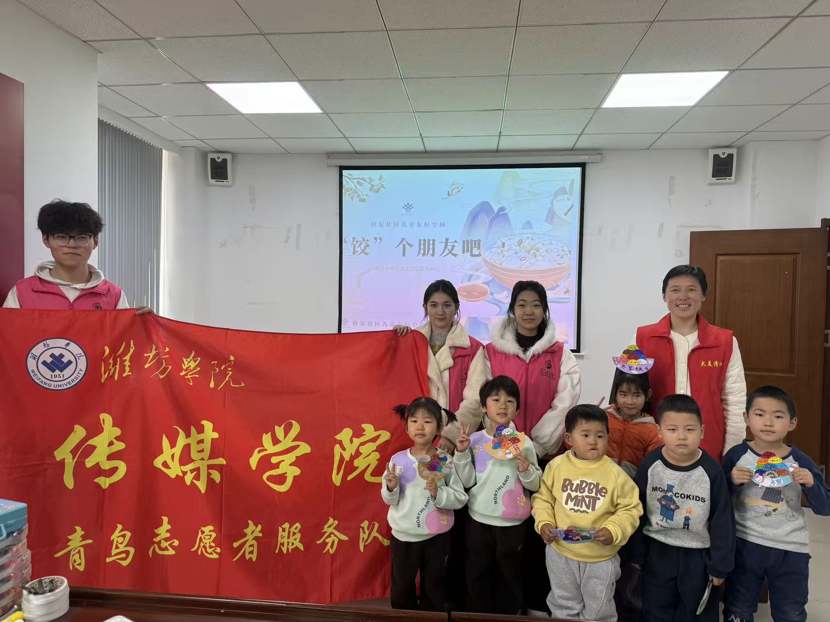 为积极履行社会责任,传递公益温暖,丰富社区儿童课余文化生活,引导孩子们在动手实践中发掘创意潜能、感受创作乐趣和非遗文化的氛围,12月20日上午,我院“青鸟”志愿者服务队走进潍坊市府东社区,开展了孔子学堂手工公益课堂活动。