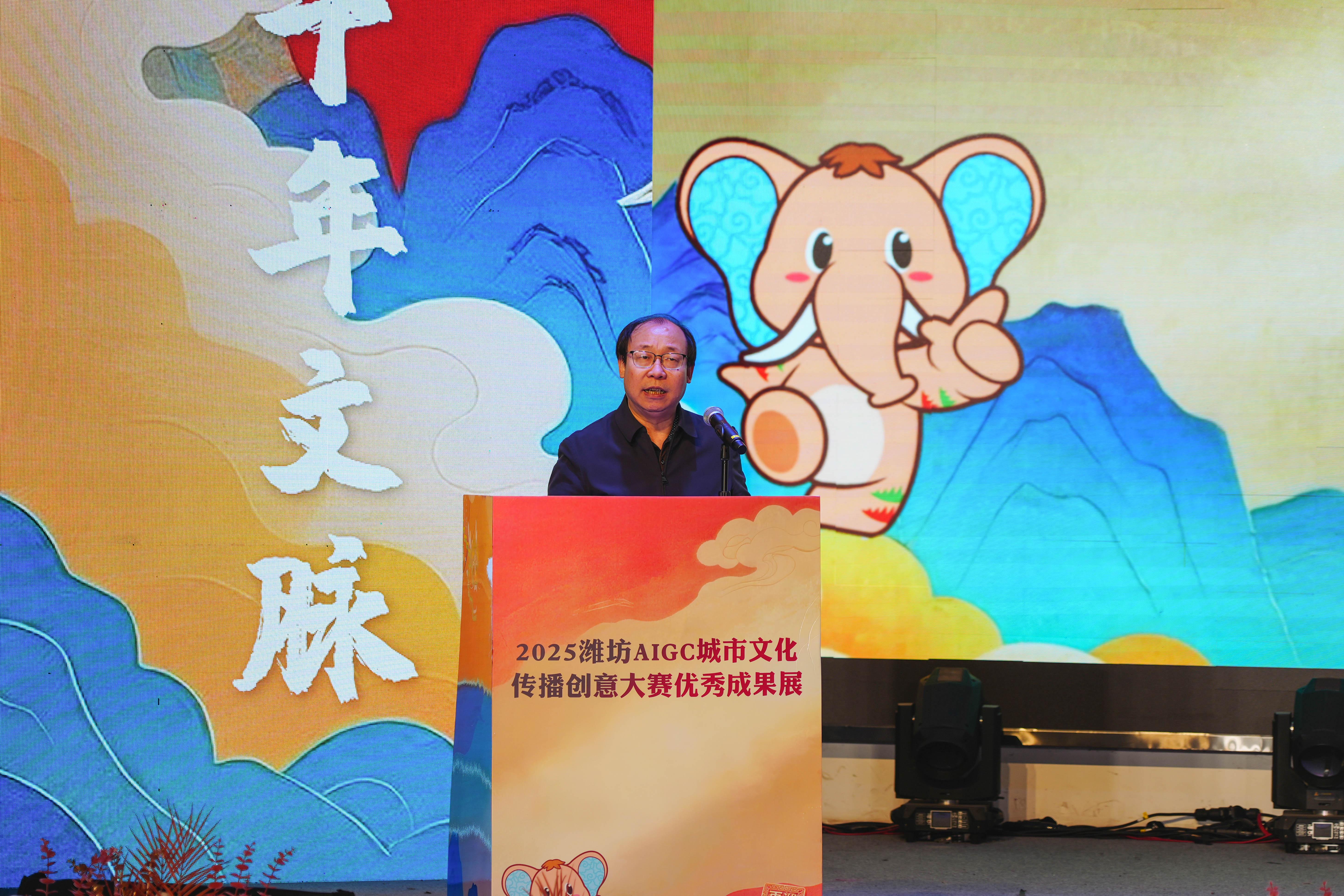 随后,路全东在致辞中充分肯定了大赛的重要意义,他指出,本次活动不仅是优秀作品的集中展示,更是推动AIGC技术与城市文化深度融合的重要平台。李英德则在致辞中表示,潍坊学院将继续发挥高校的学科与人才优势,加强与各方之间的协作,共同探索AIGC技术在文化传播领域的深度应用,为推动潍坊文化事业的繁荣发展贡献更多高校力量。