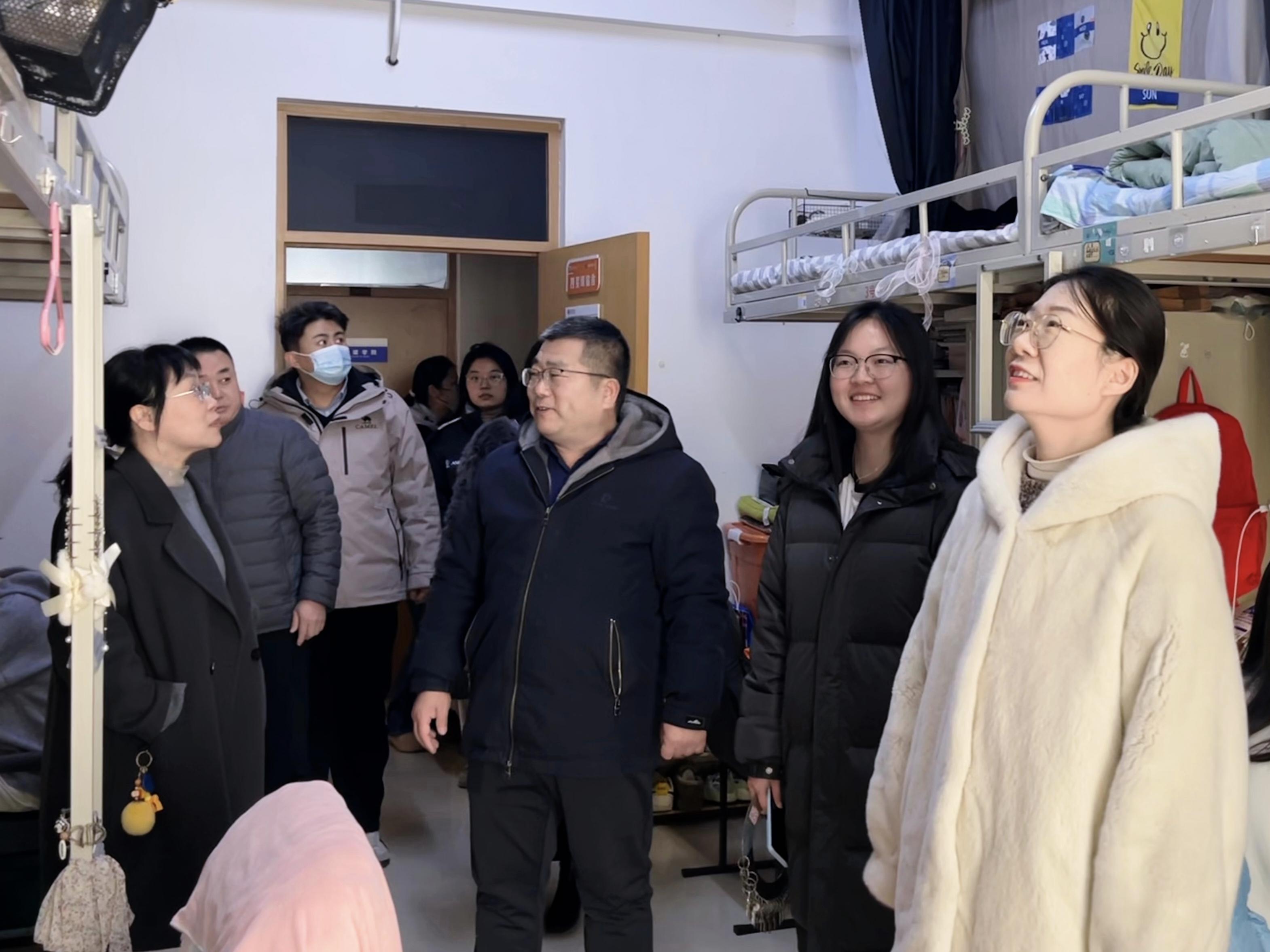为进一步了解同学们期末复习备考情况,切实做好期末教学与学生关怀工作,1月8日下午,我院党委书记张鲁筠,党委副书记、副院长邓建波带领各年级辅导员以及部分学生干部前往学生宿舍走访慰问,为同学们送上关怀和鼓励。