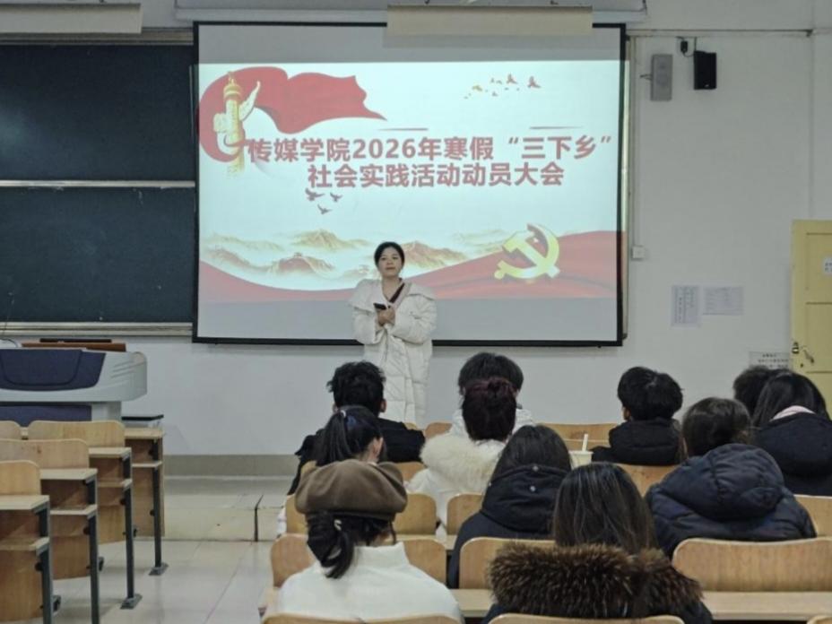 本次传媒学院2026年寒假大学生“三下乡”社会实践活动动员大会的召开,进一步统一了参会人员的思想、明确了实践方向,为传媒学院寒假社会实践的顺利开展奠定了坚实基础,也为传媒学子以专业特长参与家乡建设搭建了实践平台。