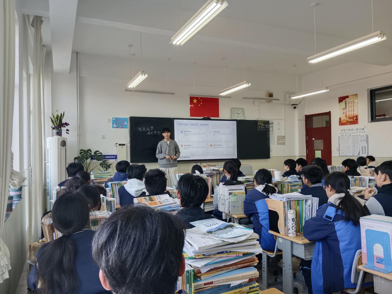 互动问答环节中,面对同学们提出的关于专业学习就业方向、校园生活配套、高考备考技巧等疑问,宣讲小组成员耐心细致地逐一解答,结合自身备考经历提供实用建议,帮助大家明确学业目标,缓解备考压力。