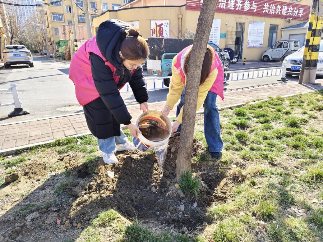 在清理工作完成后,志愿者们随后开展绿植浇水养护工作。大家穿梭于林木花草之间,提桶取水、细心灌溉,为绿植补充水分,用心呵护社区内的一草一木。志愿者们始终保持认真细致、团结协作的状态,用实际行动诠释着奉献、友爱、互助的志愿精神,以饱满热情守护社区绿意。
