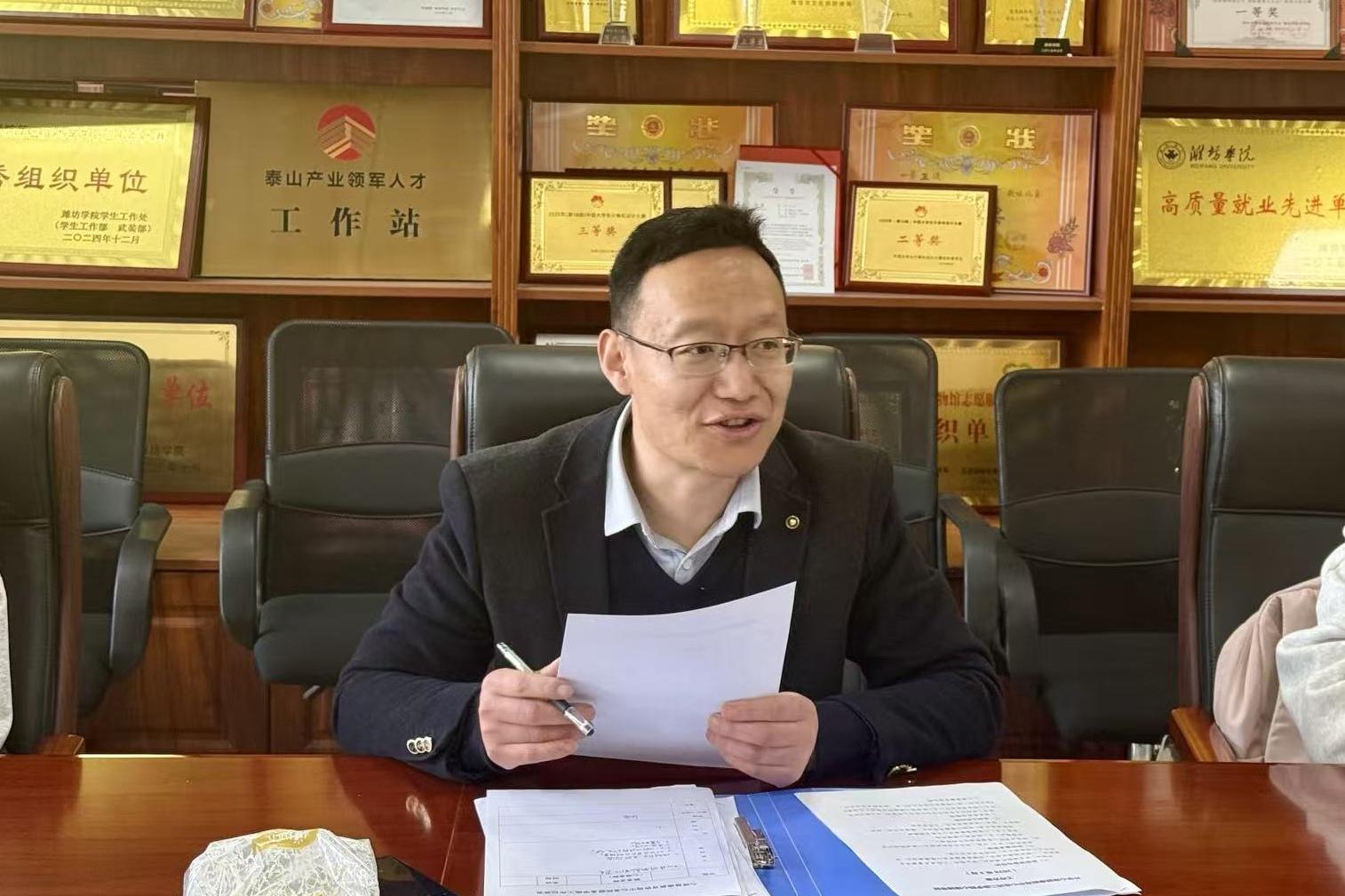 为进一步提升心理育人工作的针对性和实效性,3月25日上午,学校心理健康教育咨询中心王学军老师到我院开展调研指导工作。我院学生工作办公室主任、2025级辅导员沈杰,团委副书记兼学生工作办公室副主任、2025级辅导员张潇,2023级辅导员吕怀昱,2025级学生代表参加此次会议。