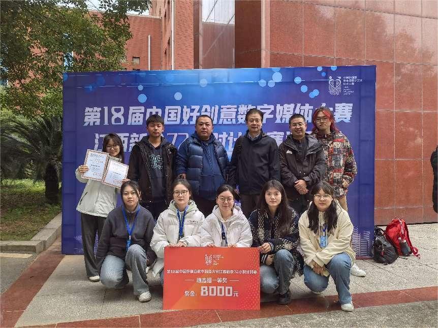 2023年11月26日,第18届中国好创意数字媒体大赛72小时计时赛在江西新余圆满结束。此次比赛,共有中国传媒大学、南京艺术学院、广州美术学院、同济大学、北京师范大学等70余所高校的800余名学生参赛,在激烈的角逐中,我校传媒学院师生表现出色,取得了骄人的成绩。