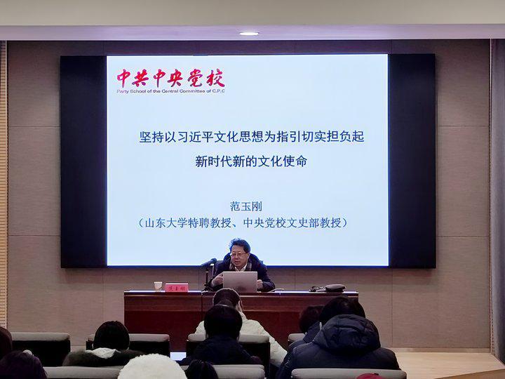12月12日,我院在四号楼4210报告厅举办学习贯彻习近平文化思想专题讲座,邀请山东大学特聘教授、中央党校文史部教授、中国文艺评论(山东大学)基地主任、山东省文艺评论家协会主席范玉刚担任主讲。潍坊学院党委委员、宣传部长张晓静出席,传媒学院班子成员、全体专业教师及文史学院部分师生参加。讲座由传媒学院副院长韩殿元同志主持。